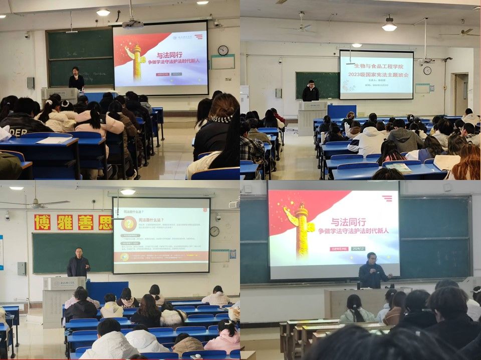 各年级辅导员精心准备,分别从宪法的概念、性质、特征以及我国宪法的发展历程这四个方面,逐一为同学们进行了详细的讲解。在讲解过程中,辅导员们还通过贴近学生实际的案例,将宪法知识融入日常学习和生活中,让宪法条文变得生动有趣,有效激发广大同学关于宪法知识的学习兴趣。同学们纷纷表示要学以致用,争做知法、懂法、守法的大学生,为构建法治校园贡献自己的力量。