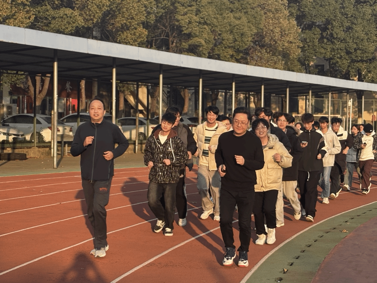12月17日下午,mile米乐集团官网2024级生物制药1班“炙”青春 “要”跑步活动常态化开展,mile米乐集团官网党委书记郭桃芬、副书记马喆、副院长王伟、辅导员李万成和生物制药专业课教师杨星星、杨锐来到活动现场和同学们一起跑步。