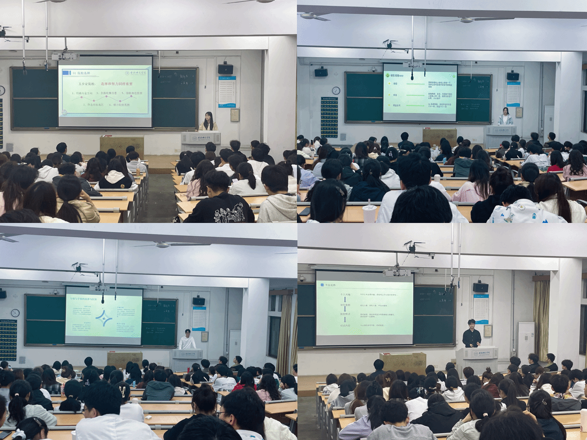 在互动交流环节,同学们围绕“专业院校分析”、“实习与备考的平衡”、“复试技巧”、“复习压力调试”等问题踊跃提问,学长学姐们结合自身经历详细解答,并鼓励大家考研之路贵在坚持,贵在自信,贵在刻苦。