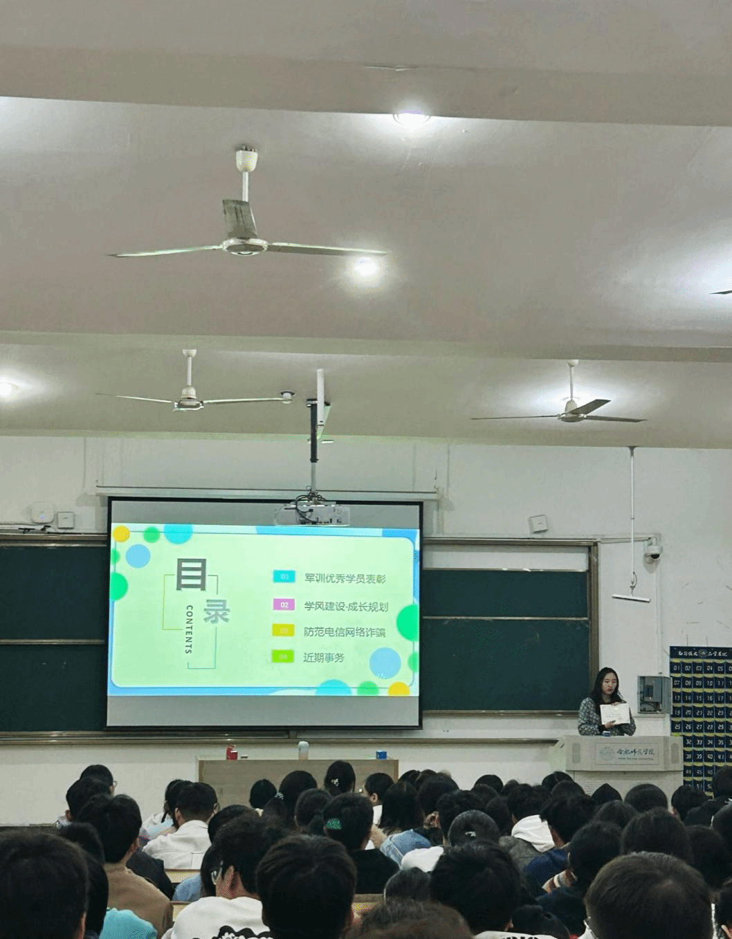 班会伊始,梁悦对在军训中表现优异的学员进行了集中表彰,旨在树立榜样,激励全体同学将军训中锤炼的优良作风融入日常学习与生活,共同营造积极向上的集体氛围。围绕新生成长的核心需求,此次班会内容主要从三个方面展开。