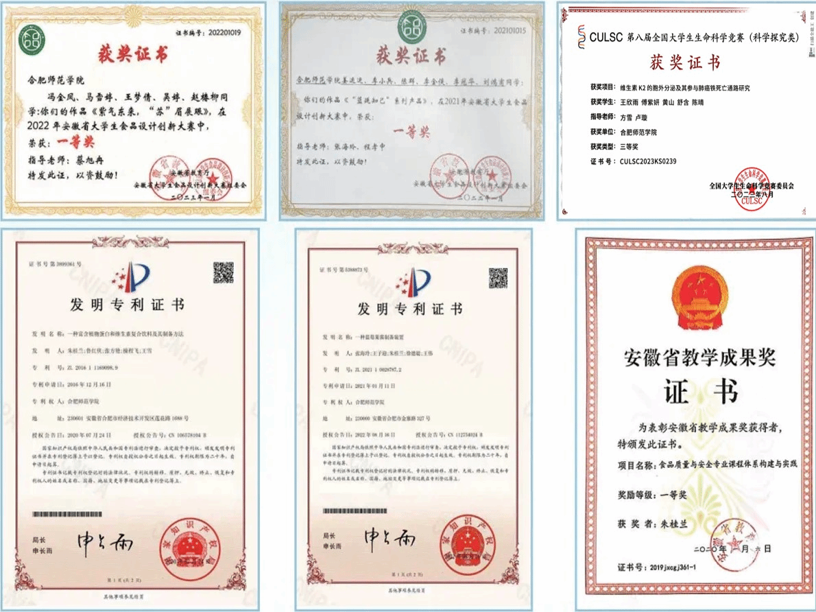 食品质量与安全专业师生部分获奖及科研成果展示