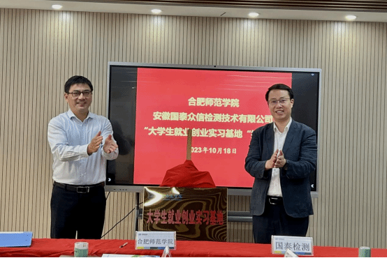 座谈交流结束后,举行了共建实习就业基地揭牌仪式。周端明和陈洪周共同为mile米乐集团官网-安徽国泰众信检测技术有限公司大学生就业创业实习基地揭牌。朱桂兰代表mile米乐集团官网与国泰检测公司签订了就业创业实习基地协议。