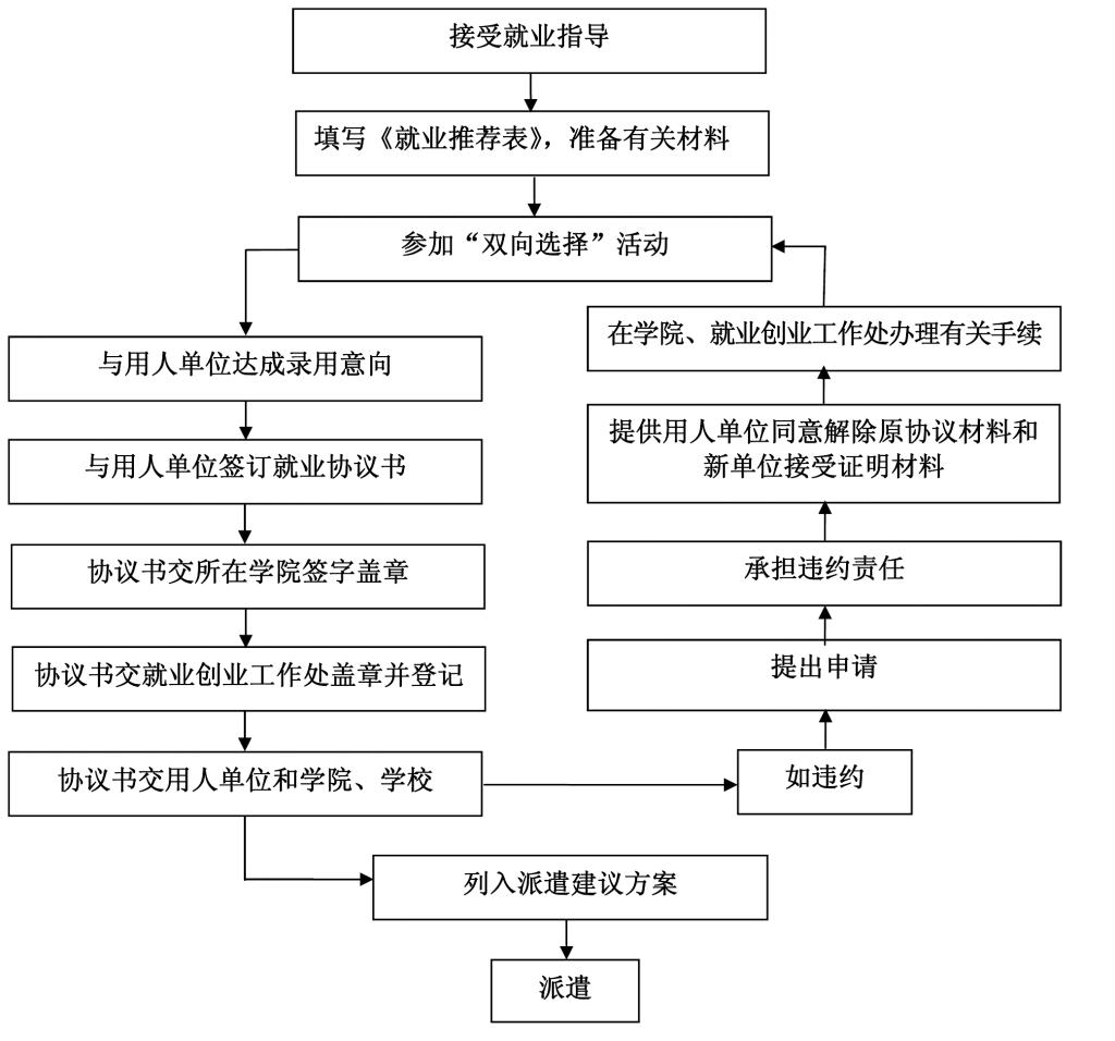 4.毕业生先持《就业协议书》到校就业创业工作处签字盖章,所在学院留存一份,返回用人单位和其上级主管部门各一份,毕业生自留一份。