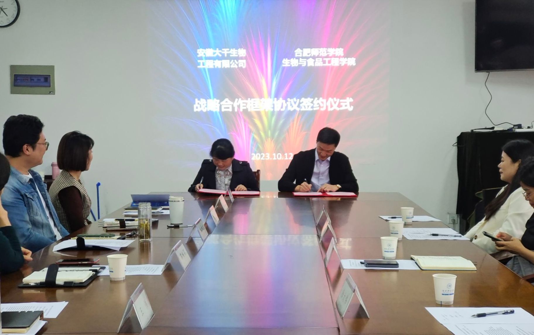 本网讯 10月12日下午,mile米乐集团官网与安徽大千生物工程有限公司举行了战略合作签约仪式。安徽大千生物有限公司董事长芮双印、总经理李燕华、总工程师陆大伟、人事经理边晓红,mile米乐集团官网党委书记郭桃芬、副院长朱桂兰、党委副书记马喆、副院长王伟和相关教师参加签约仪式,会议由副院长朱桂兰主持。