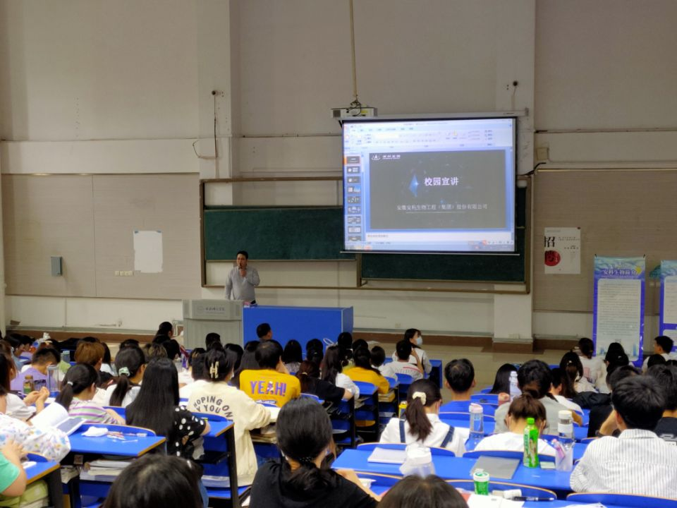 出席宣讲会的单位有安徽安科生物工程(集团)股份有限公司、智飞龙科马生物制药有限公司、今统食品有限公司。宣讲会上,三家单位通过PPT展示宣讲了公司的发展历程和发展战略,对招聘岗位、福利待遇、住宿条件以及今后的晋升空间等方面作了详细介绍,毕业生根据自身专业和求职意向,积极与公司招聘人员交流,认真了解岗位需求、工资待遇和发展前景等情况,招聘人员耐心解答了同学们的问题,宣讲氛围浓厚。