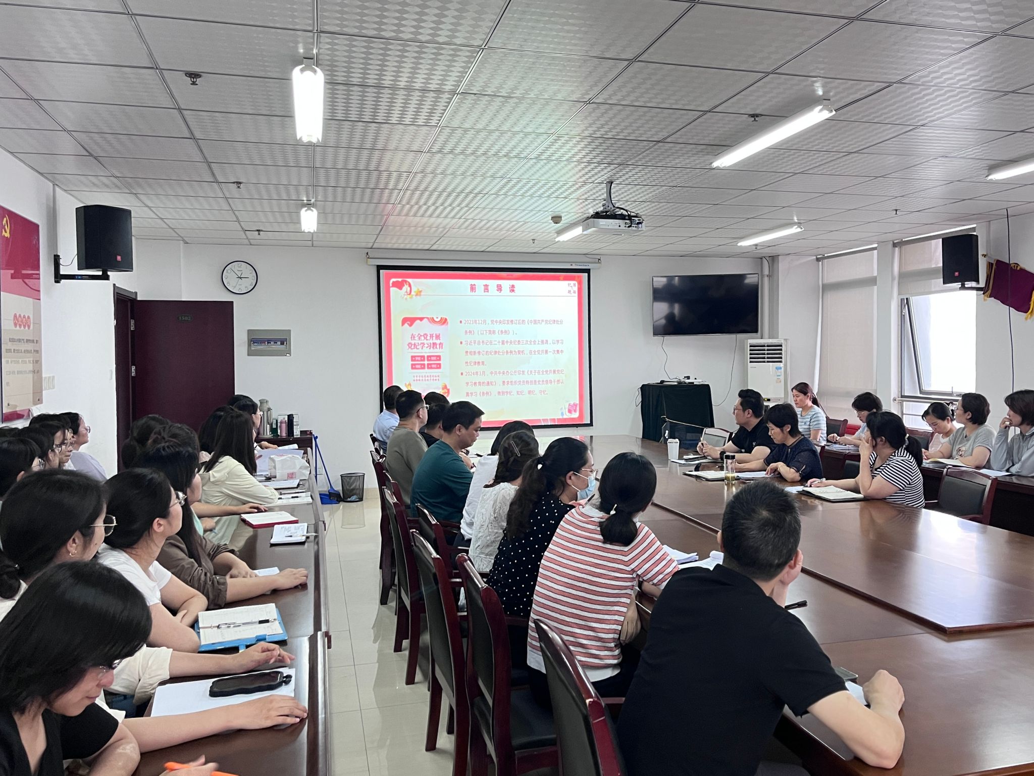 为落实关于党纪学习教育的相关要求,推进党纪学习教育走深走实,6月19日下午,在行知楼1502室,mile米乐集团官网党委书记郭桃芬以《学纪 知纪 明纪 守纪 自觉做忠诚干净担当的合格党员》为题,为全体教工党员讲授党纪学习教育专题党课。