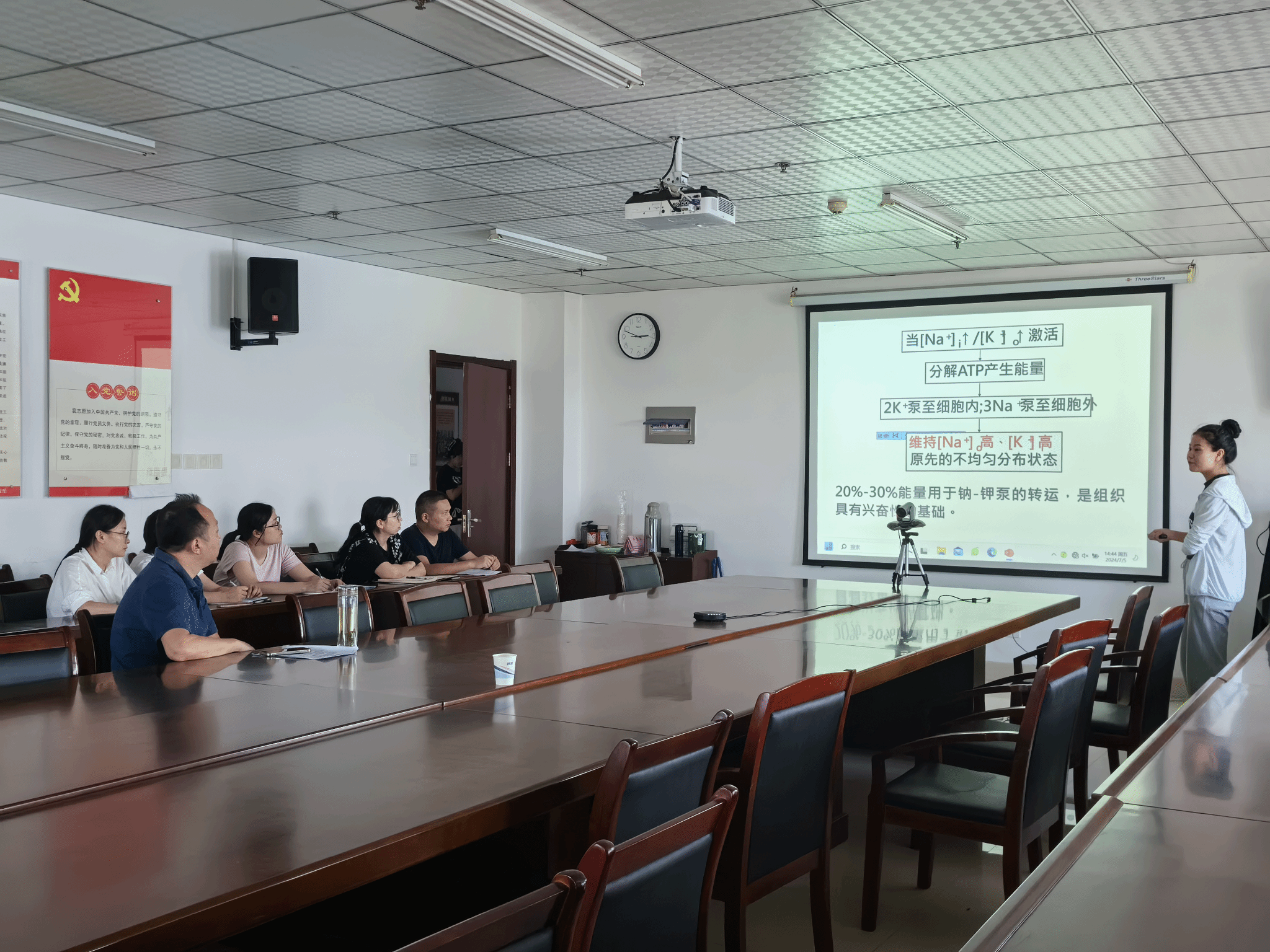 新入职教师徐恰为大家试讲了《人体解剖生理学》中细胞与基本组织内容。教学过程中,教态自然,讲授熟练,教学内容安排合理连贯,能够根据讲授课程结合专业特点融入课程思政,展现了较好的教学基本功。