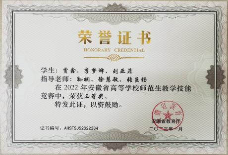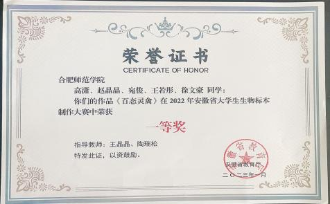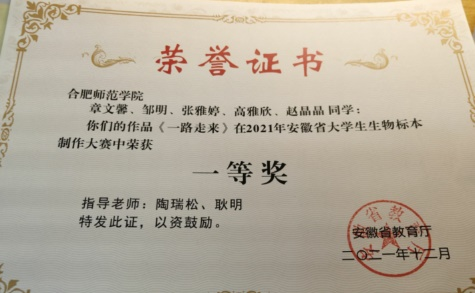 (4)以职业需求为导向,人才培养质量显著。本专业培养了一批综合素质高、实践能力强、发展后劲足的生物教学、研究和管理人才。近三年,生物科学专业学生获安徽省大学生标本制作大赛一等奖两项,获安徽省高等学校师范生教学技能竞赛二等奖2项,三等奖5项,获“田家炳杯”第八届全国师范院校师范生教学技能竞赛三等奖一项。学生在其他各类省级以上竞赛获奖共计32人次。本专业就业率稳定在96%以上,应届毕业生考取研究生的比例不断提高,毕业生受到用人单位一致好评。