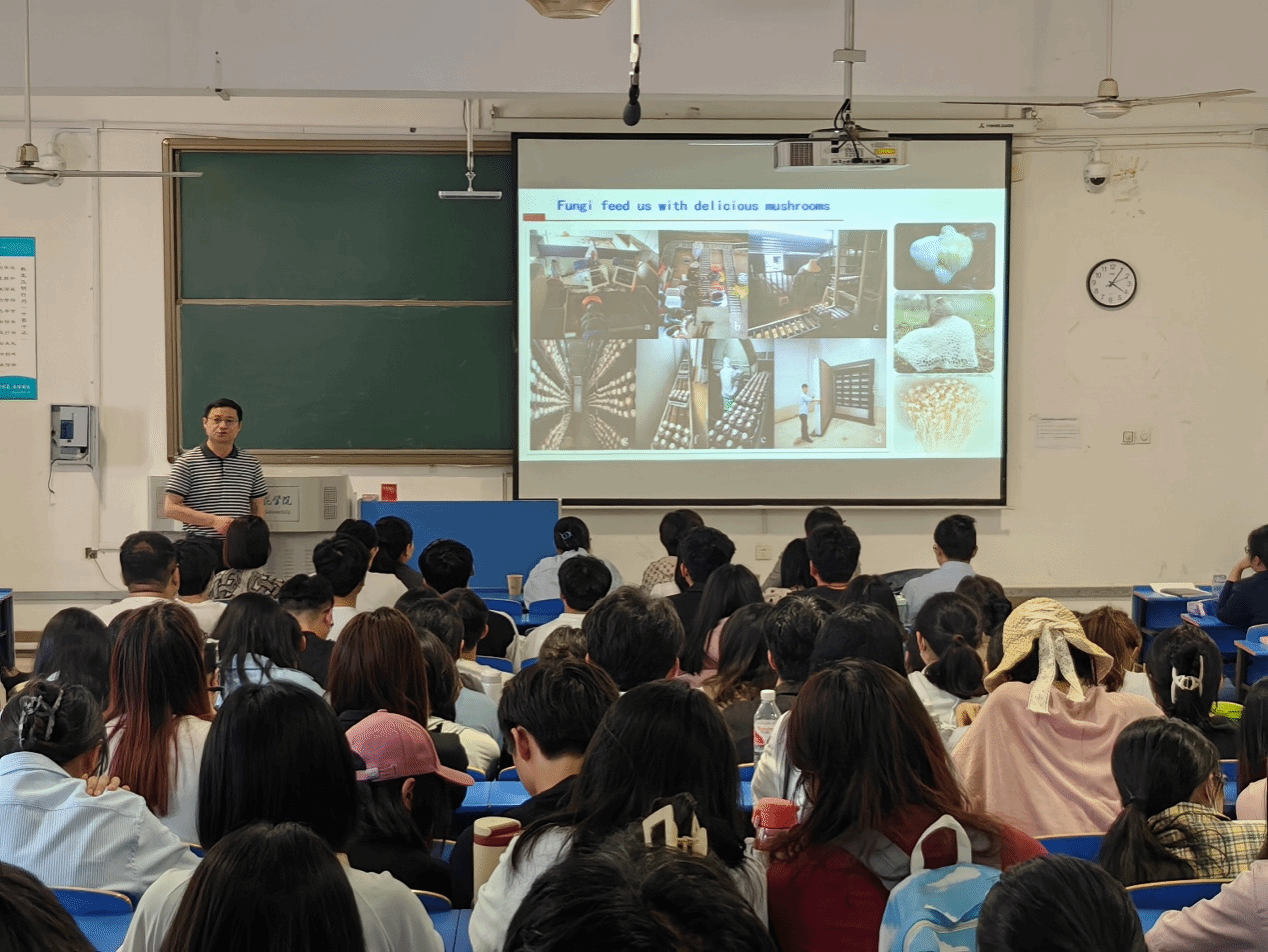 方泽民教授聚焦木材生物降解和农业循环生产中的重要环节,分析了白腐真菌分解木质素机理的研究的重要意义,介绍了课题组通过对白腐真菌对木质纤维素降解现象的研究,探明白腐真菌木质纤维素降解酶的差异表达调控机制,解析了白腐真菌木质素降解酶快速扩张的驱动力,以及新颖真菌酶蛋白及其应用等方面的研究进展工作。方教授介绍了课题组相关研究发现在食用菌栽培等领域的实际应用,通过利用农林废弃物进行发酵,降低培养成本,科技助农,带动我省皖北地区经济发展,推动乡村振兴。